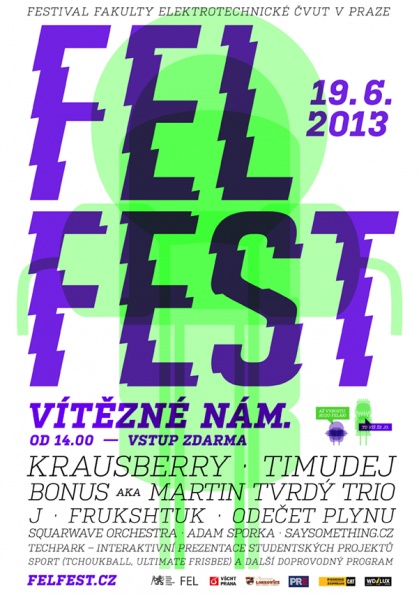 Festival Fakulty elektrotechnické ČVUT v Praze se již tradičně koná v červnu na Vítězném náměstí v Praze. FELFEST letos v novém kabátě přivítá nejen skvělé muzikanty, nabízí prostor studentům prezentovat své práce. Doufáme tak, že Vás zaujme, co se na FELu děje a čím se studenti zabývají. Nejde jen o roboty či počítače!