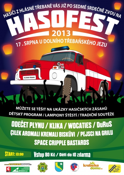 Třebaňští hasiči opět pořádájí výborný festival. Opět nebudou chybět hořící auta, pivo, klobásky a muzika! Už se těšíme!